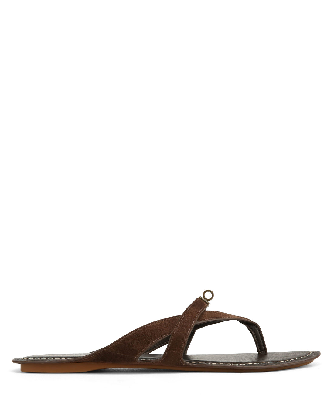 Description MARGO in Brown Suede is a refined thong sandal with a clean, sculptural feel....