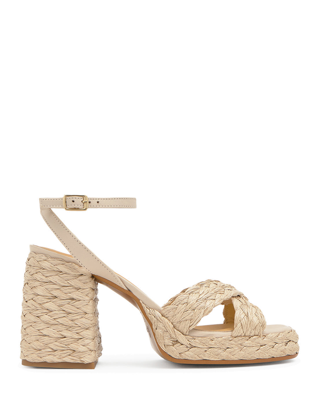 Valeriette sandal in natural raffia with buckle closure, cushioned insole, V-neck and 10cm heel with...