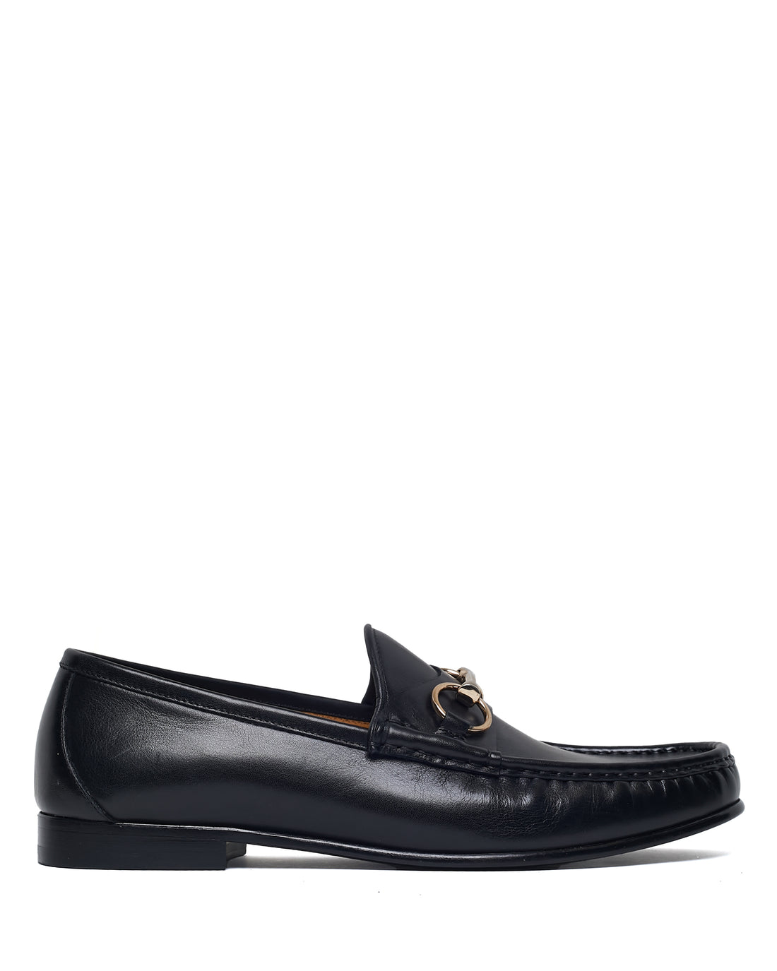 - Brushed gold horsebit trim