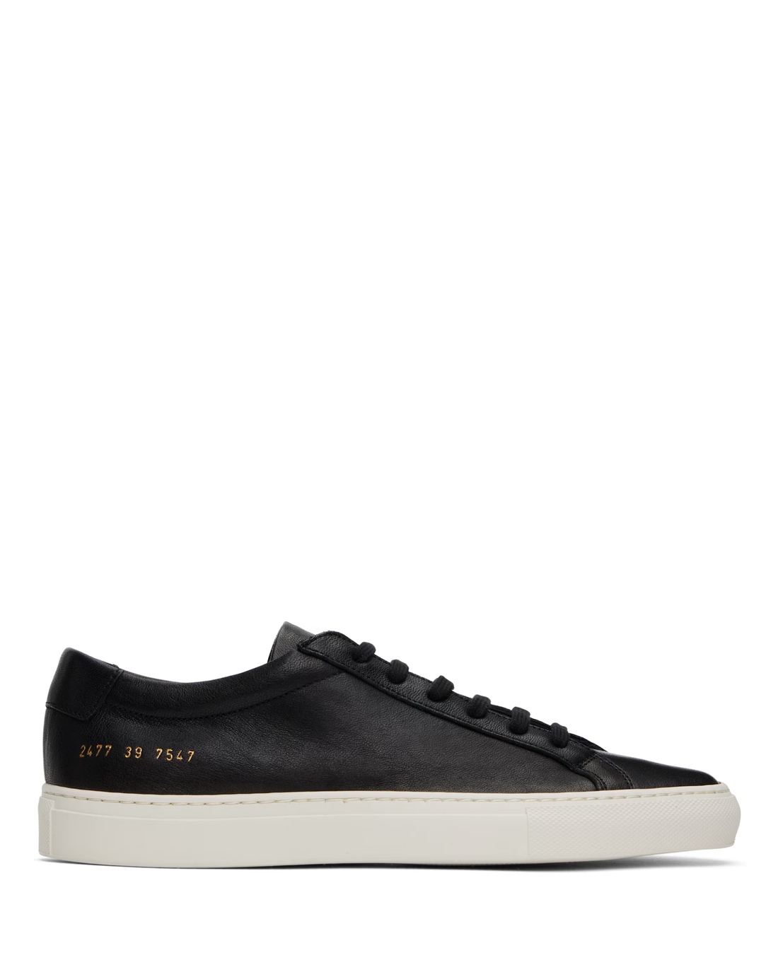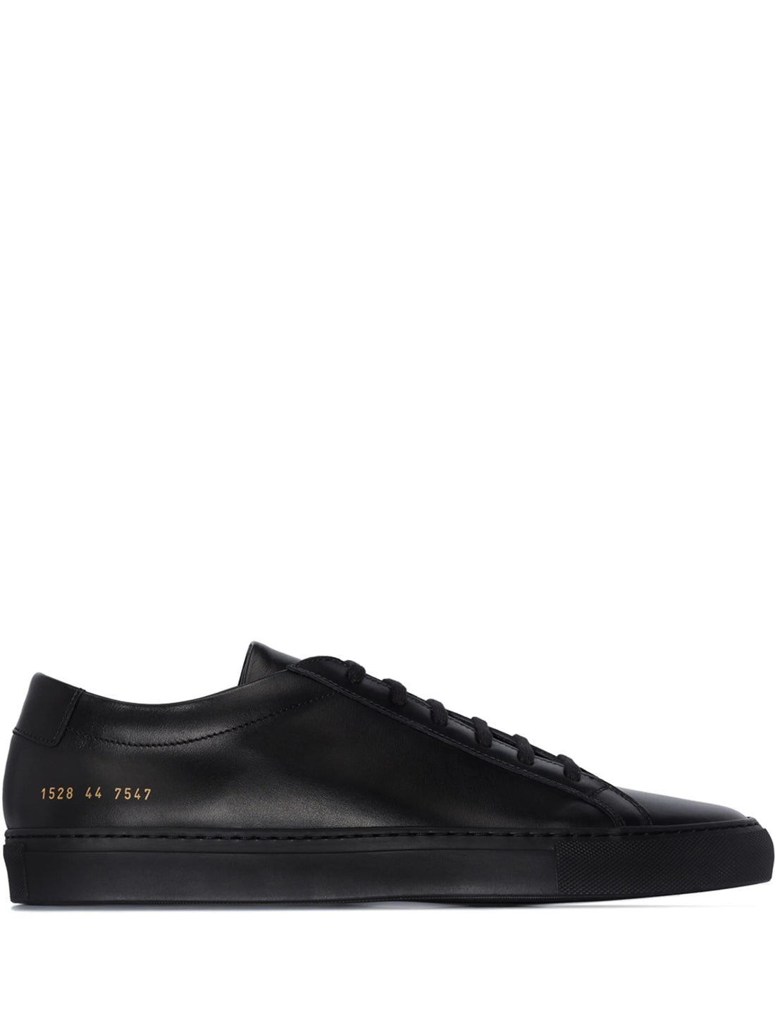 Product Description These black Common Projects Achilles low-top leather sneakers feature a round toe, lace-up...