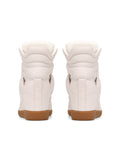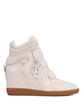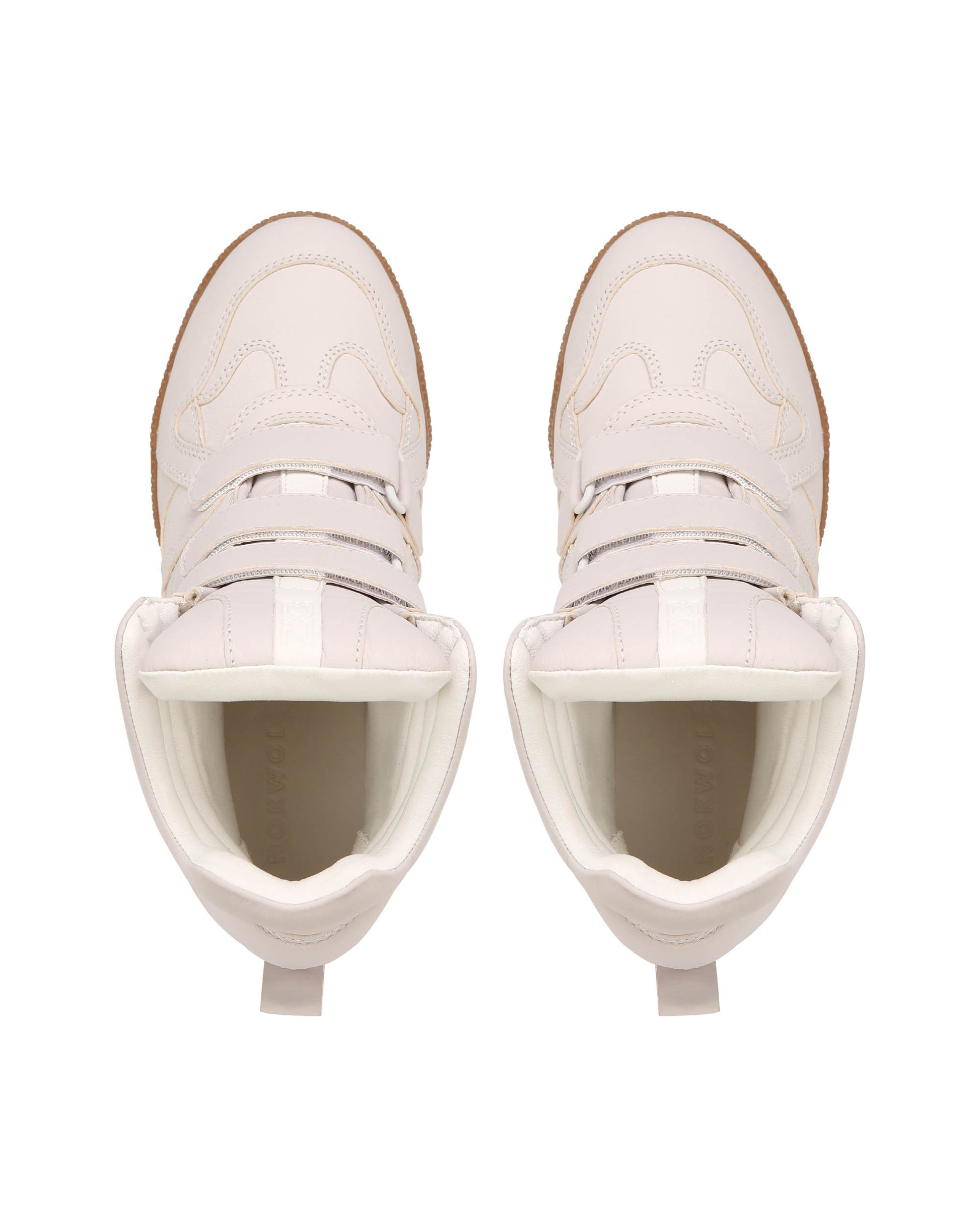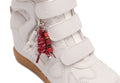 The DEMMI wedge sneaker brings together a bold fusion of luxury and athletic style with its sleek, contemporary design. Crafted from a premium leather and suede upper, this sneaker exudes timeless chic with an urban edge. The leather lining and leather insole provide ultimate comfort, while the rubber outsole ensures durability and reliable traction. Featuring a signature hanging Nokwol charm, the DEMMI offers a distinctive, stylish touch. The Velcro strap fastening ensures easy wear with a secure fit, while the hidden wedge heel adds both comfort and versatility, giving you a subtle height boost. Perfect for elevating any outfit, whether casual or refined, the DEMMI sneaker delivers a modern twist on a classic silhouette. Offered in four rich colourways—beige, brown, taupe suede, and white alcohol leather—it’s a standout piece that seamlessly blends luxury with practicality.