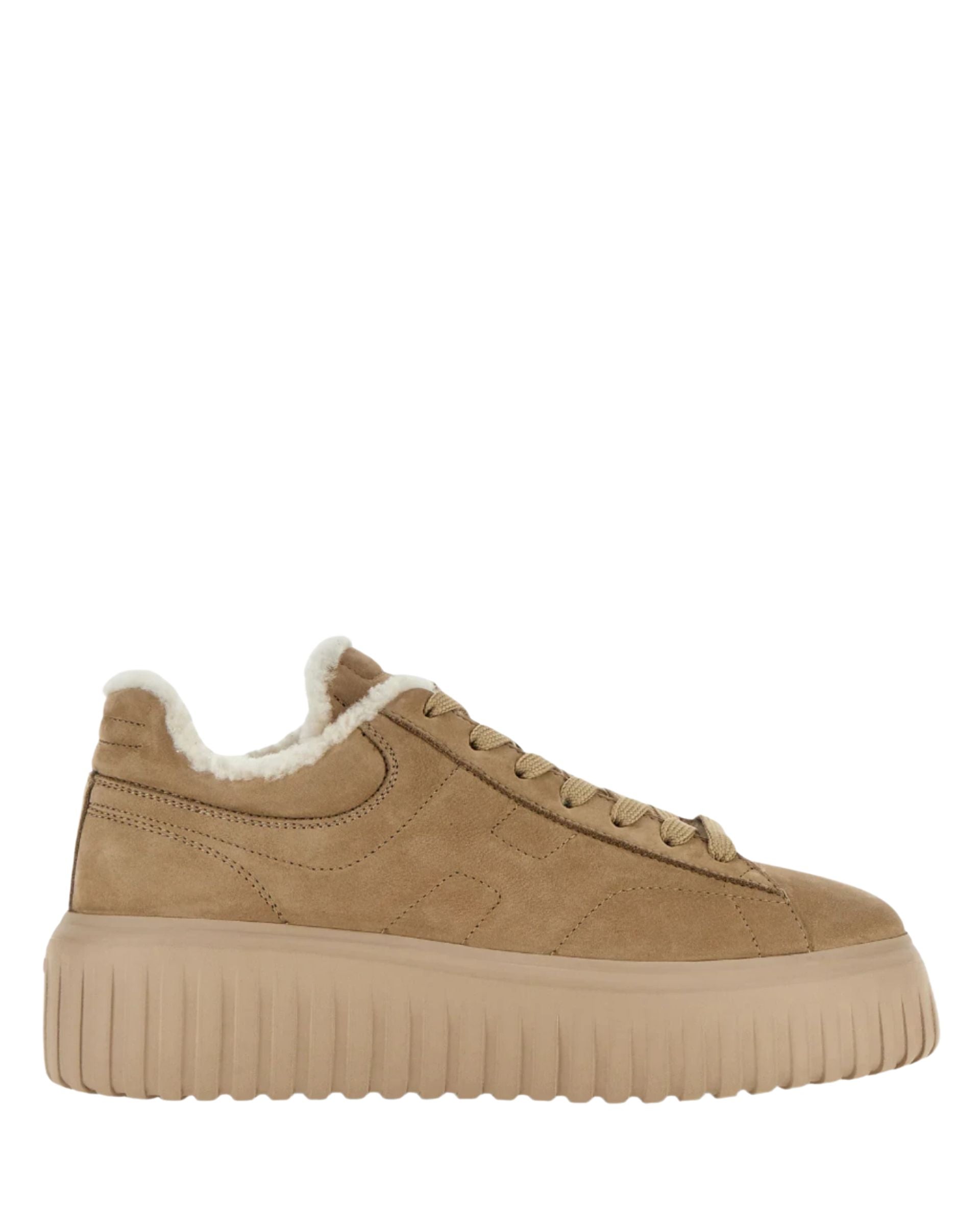 H Stripe Shearling Sneaker Tan Suede