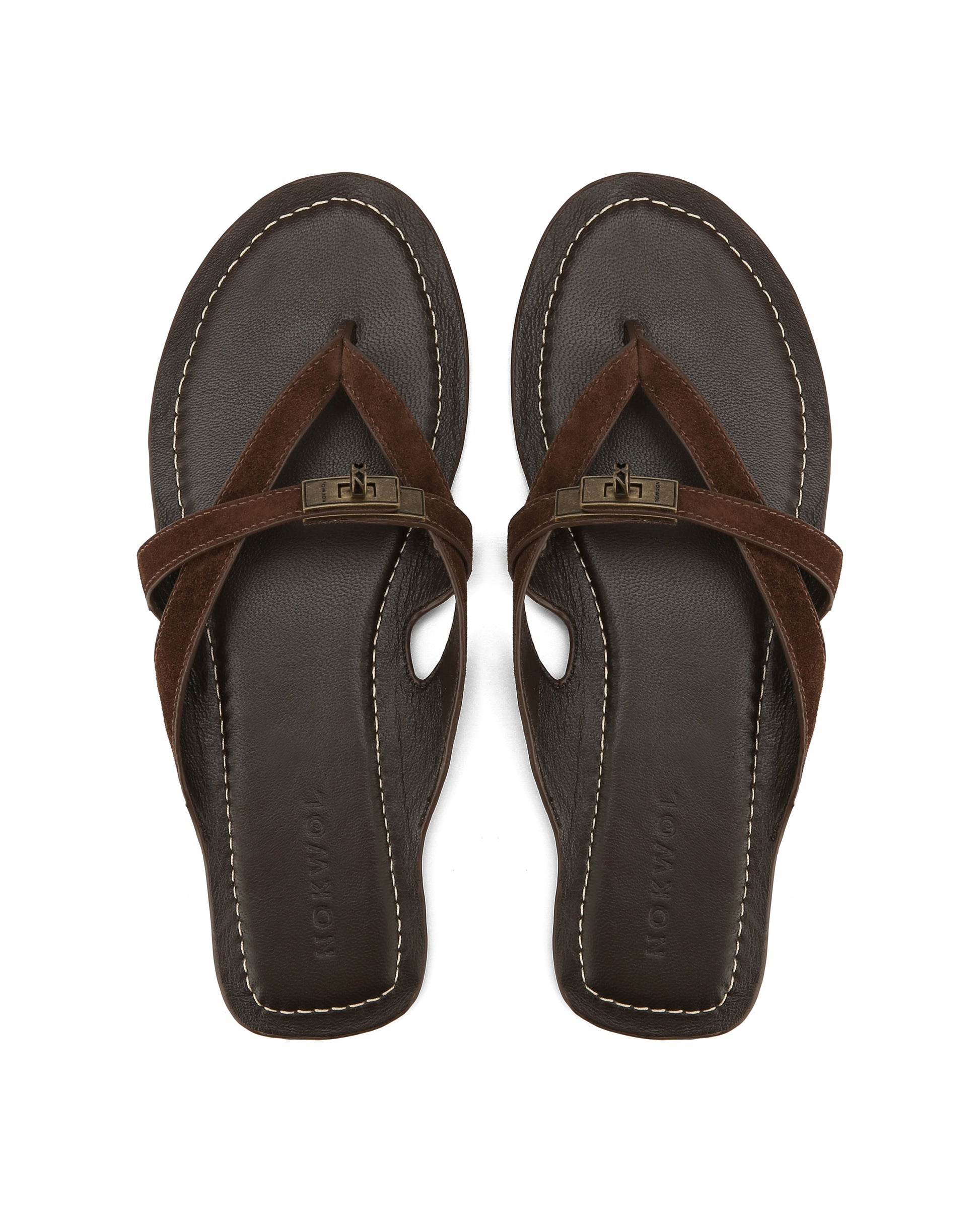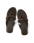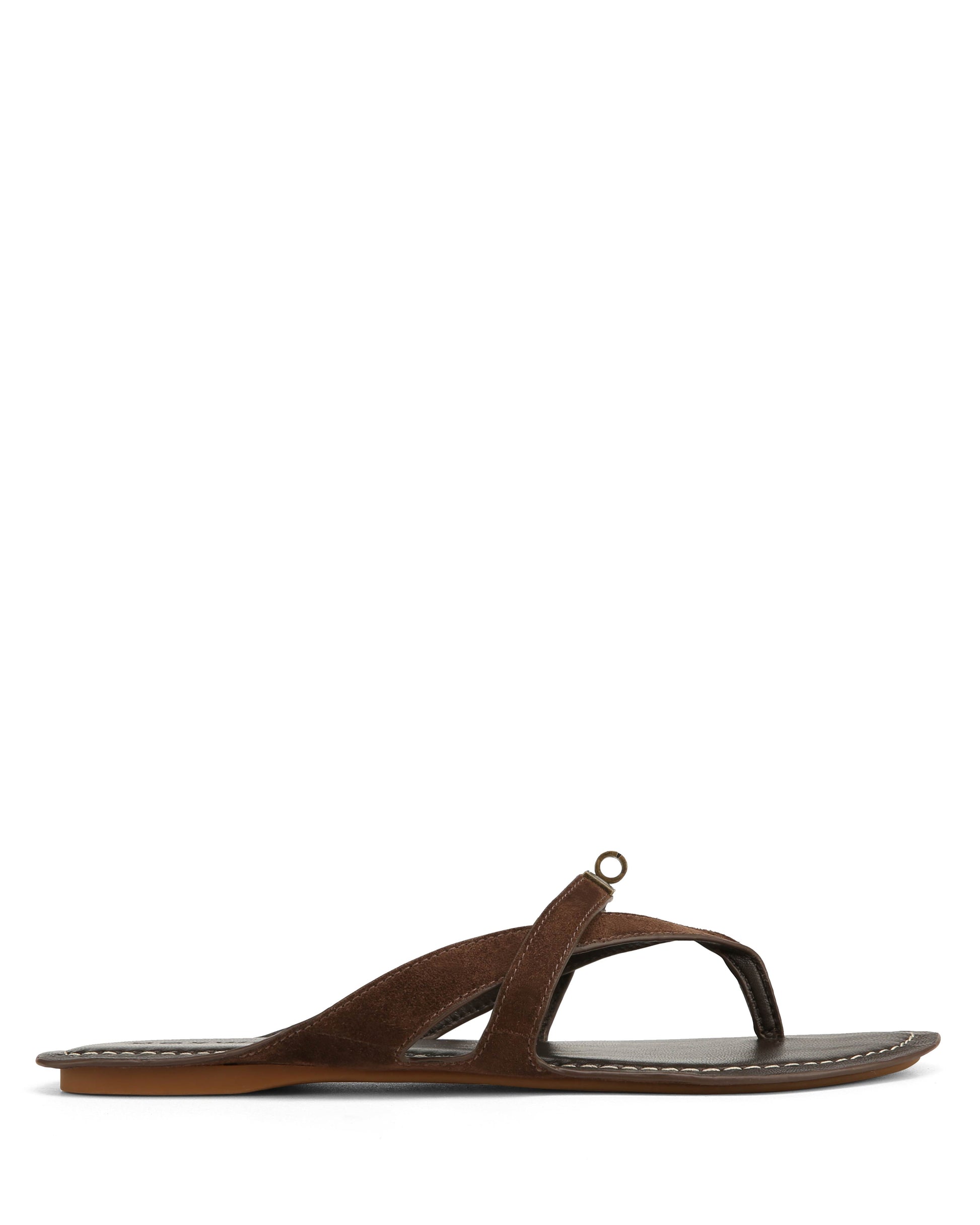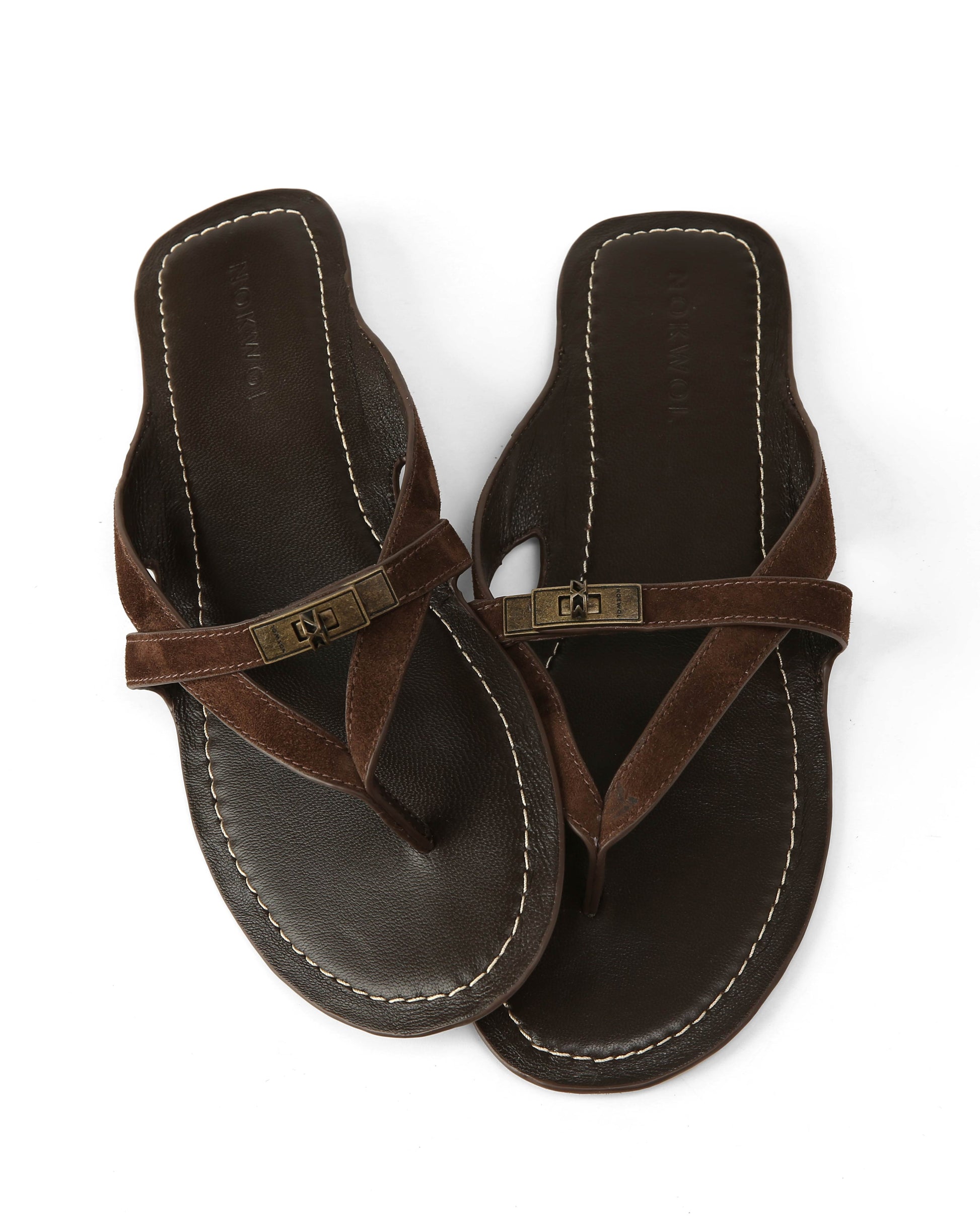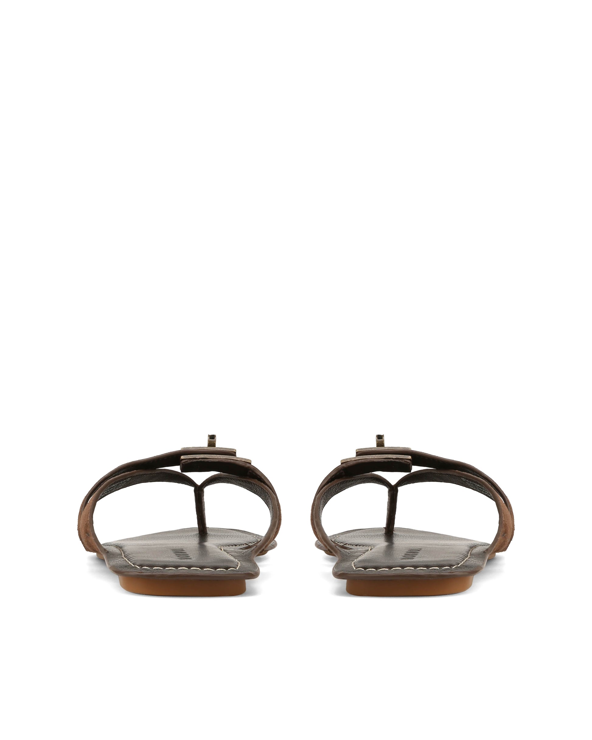 MARGO in Brown Suede is a refined thong sandal with a clean, sculptural feel. The soft suede upper keeps it minimal, while the branded metal turn-lock adds a subtle signature detail. Set on a full leather footbed with a lightweight outsole, it's easy to wear while still feeling considered. The open shape keeps it relaxed, but the finish leans more polished.