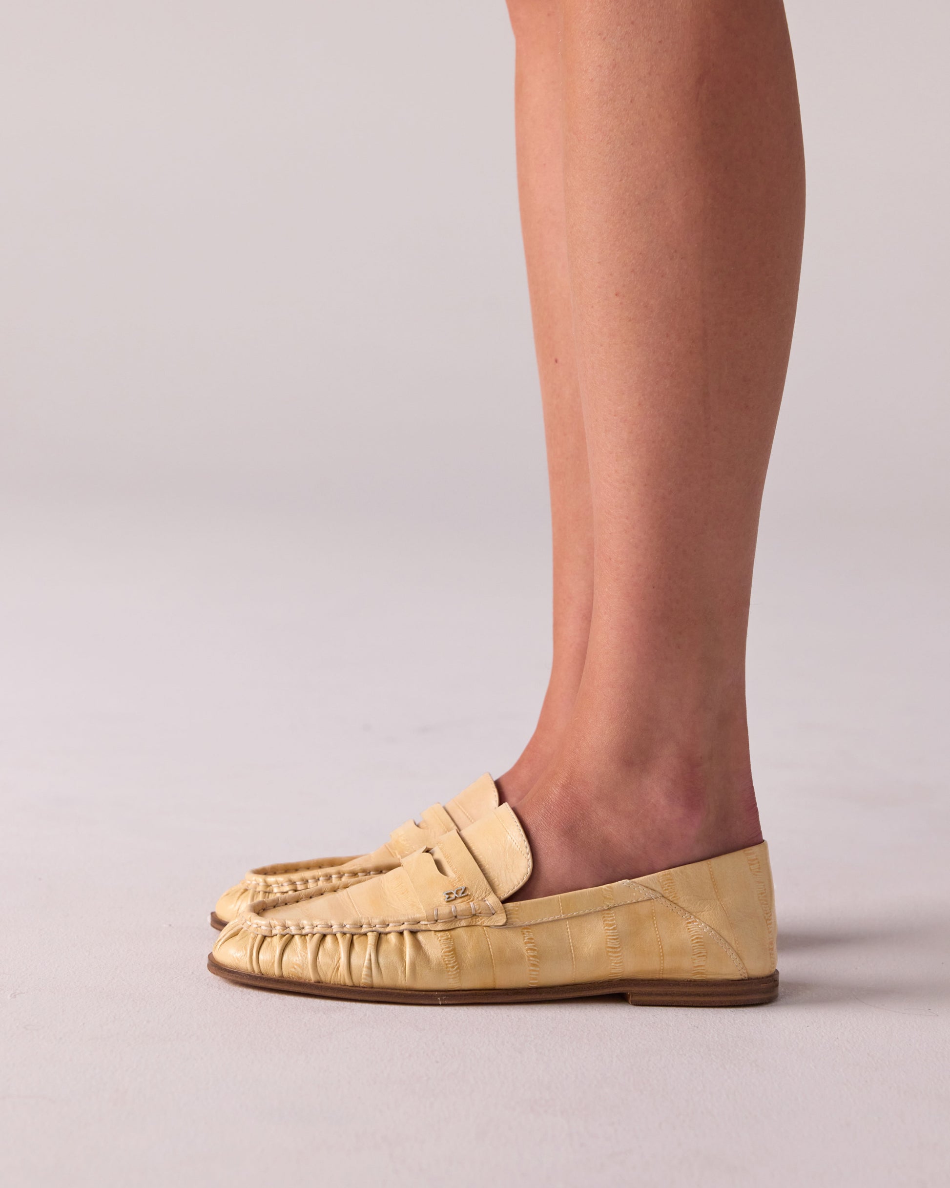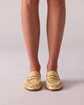 The MICA Deconstructed Penny Loafer blends elegance and comfort with buttery eel-embossed leathers, suede, and a leather-textile lining. Designed for versatility, it can be worn traditionally or as a slipper with a folded counter. Available in five timeless shades, it features a padded insole, durable resin outsole, and a signature stainless steel Nokwol pin, making it a refined yet adaptable choice for any occasion.