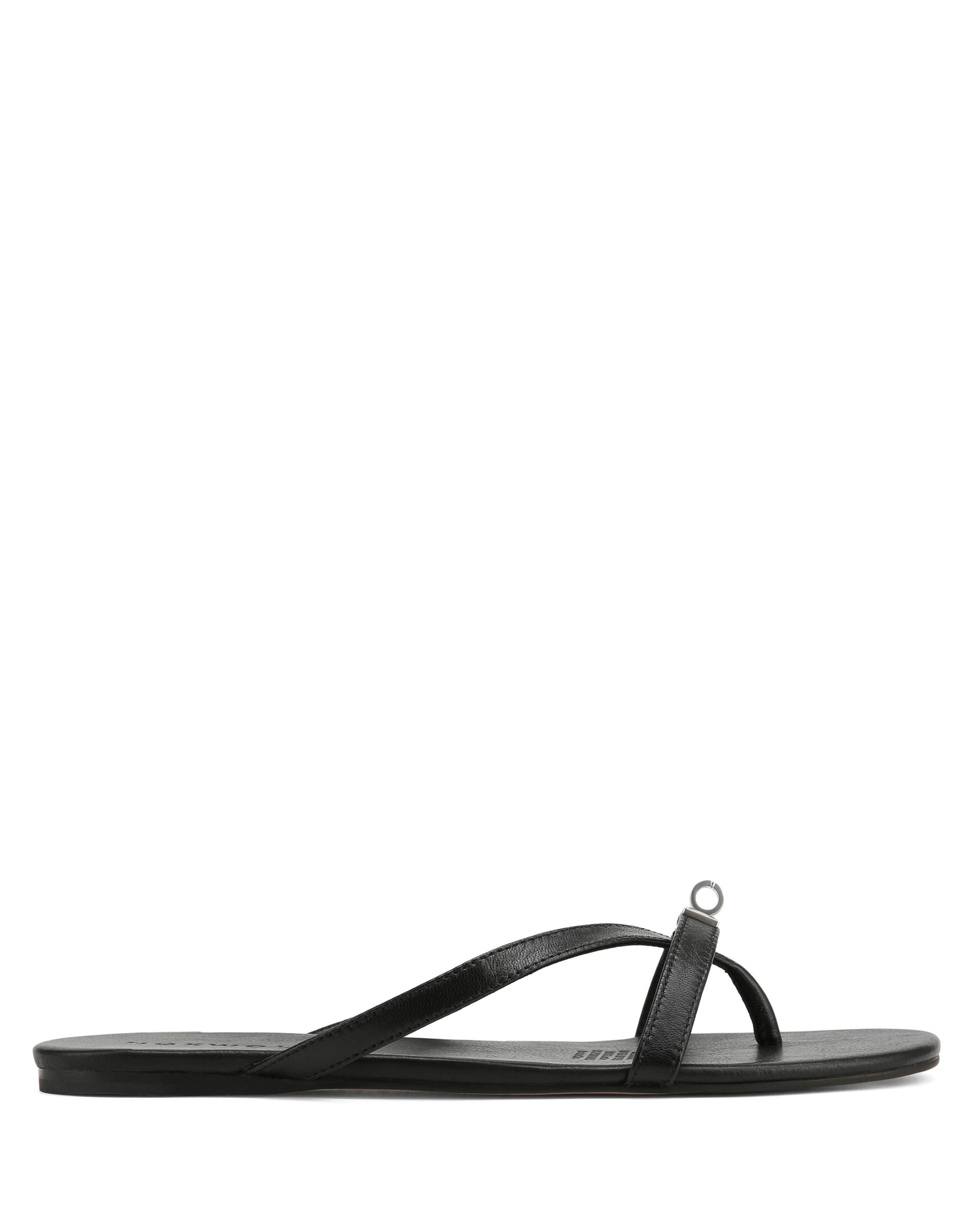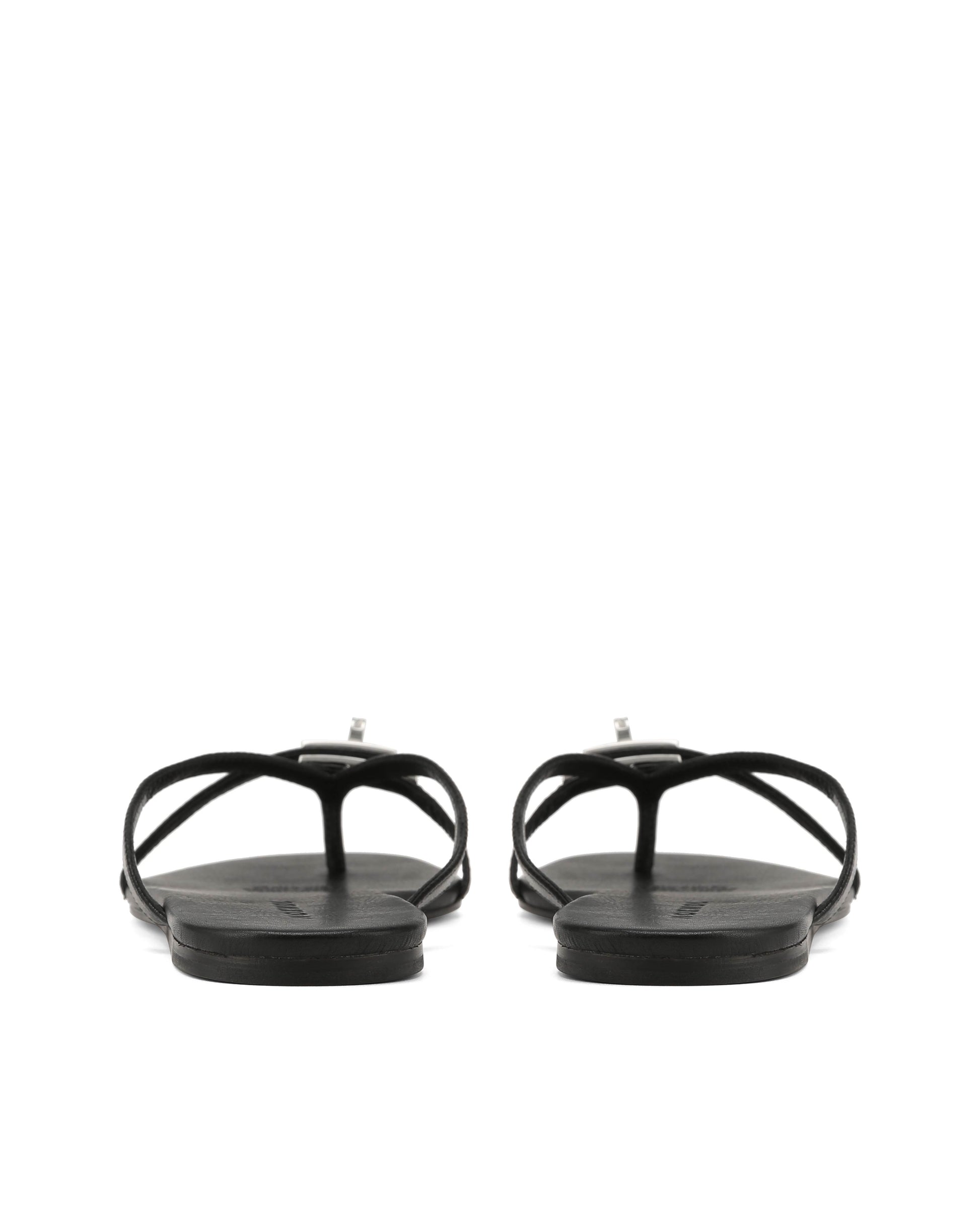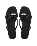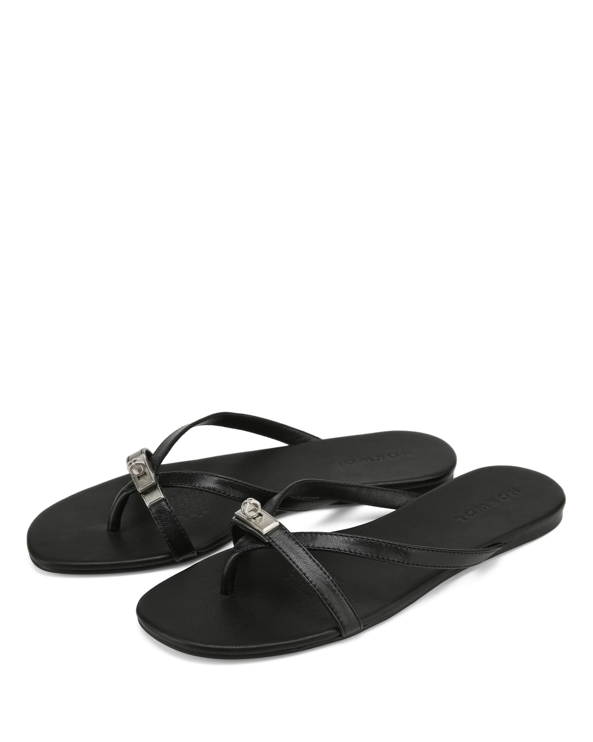 MILEY in Black Athena is a refined thong sandal with a clean, minimal shape. The soft leather upper keeps it simple, while the branded metal turn-lock adds a subtle signature. Set on a full leather footbed with a lightweight resin outsole, it’s easy to wear while still feeling polished.