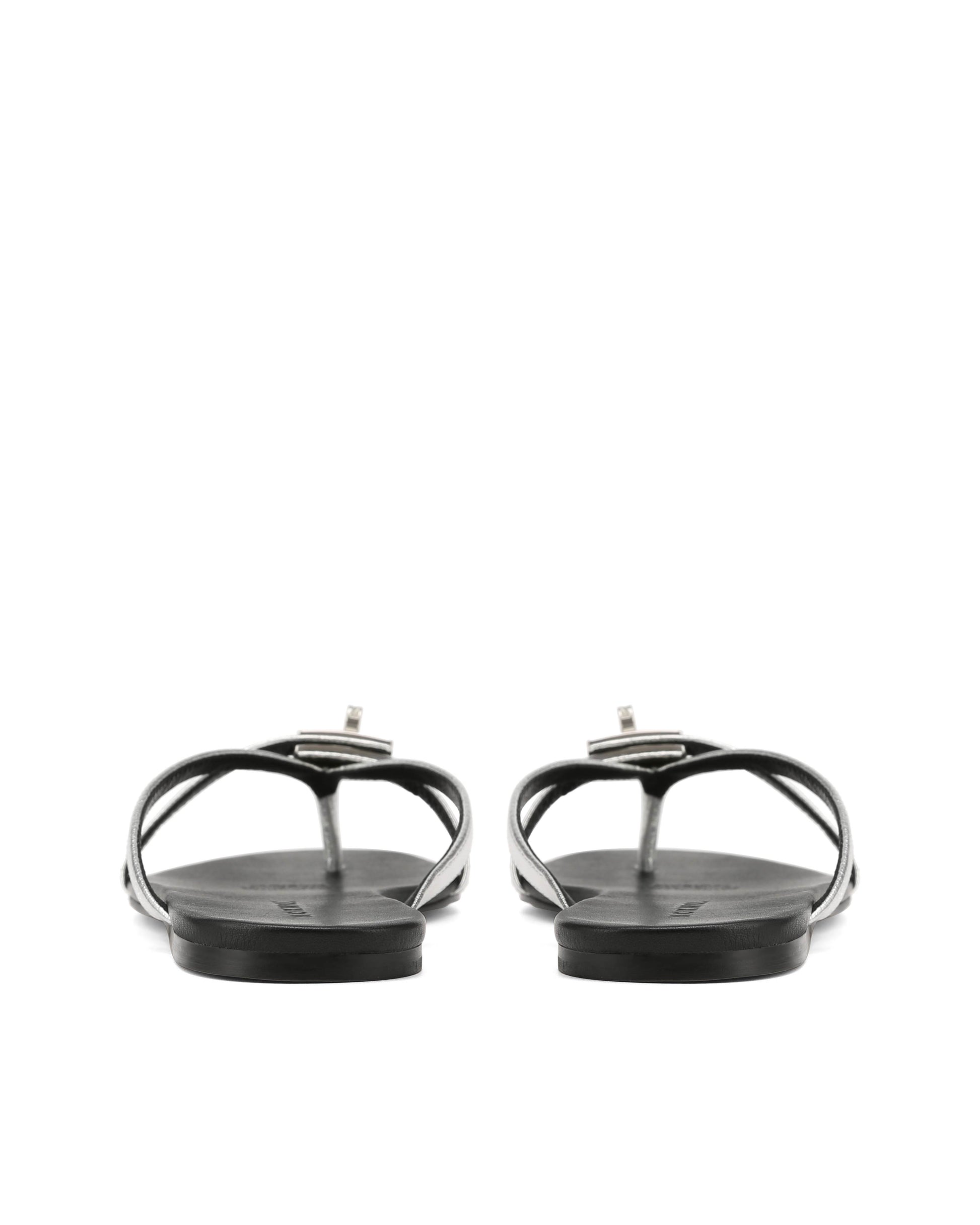 MILEY in Silver Leather is a refined thong sandal with a clean, minimal shape. The soft leather upper keeps it simple, while the branded metal turn-lock adds a subtle signature. Set on a full leather footbed with a lightweight resin outsole, it’s easy to wear while still feeling polished.