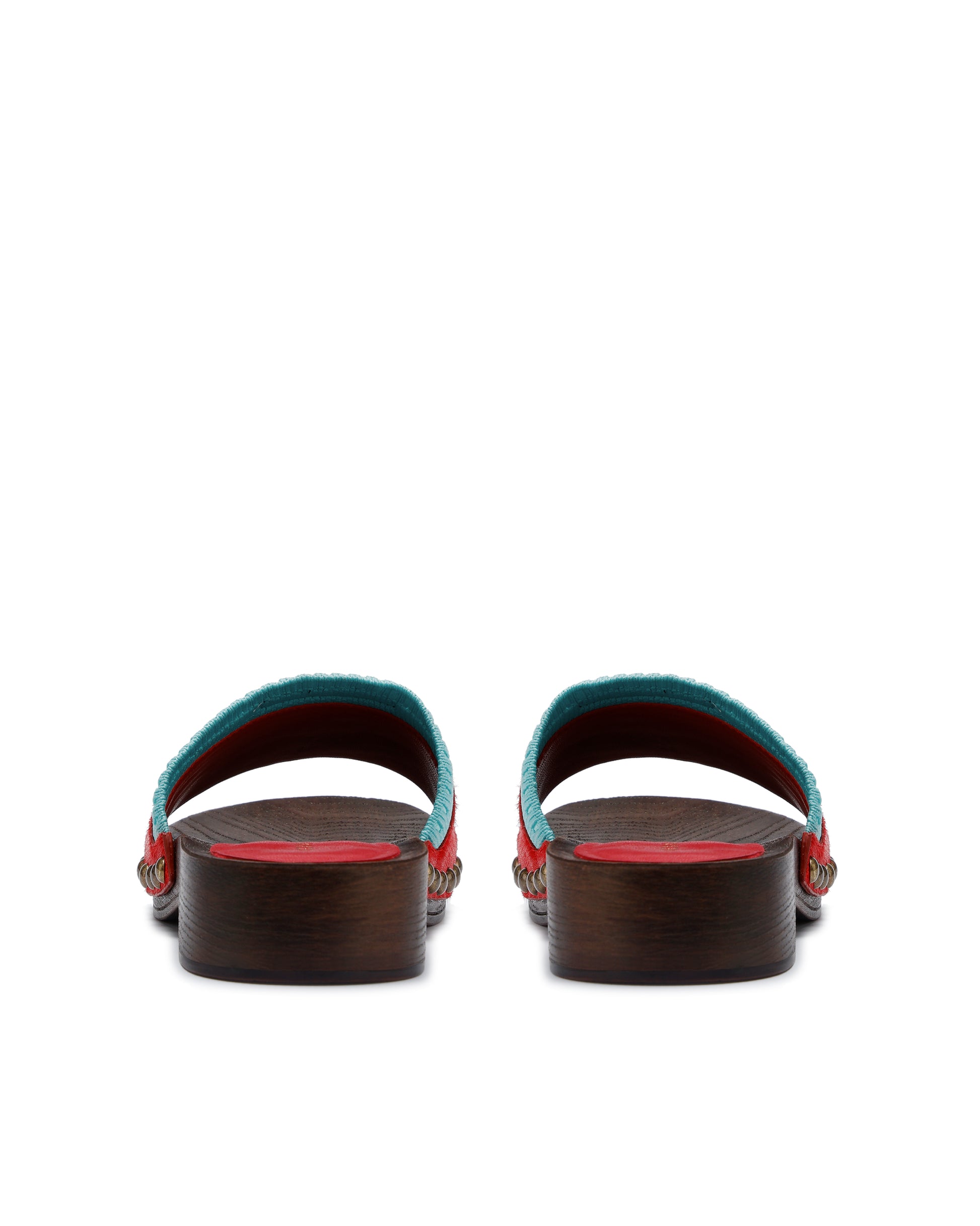 The MIRI slip-on clog sandal is a vibrant addition to your spring and summer wardrobe, designed to make a statement with its bold combination of premium materials and playful contrasts. Crafted from leather, suede, and pony hair, it features a distinctive layered design highlighted by a contrasting sock sleeve for added dimension. Antique-finished studs bring a touch of vintage sophistication, perfectly balancing the modern appeal of the wooden clog base. With its durable resin outsole, MIRI ensures all-day comfort and support, making it as practical as it is stylish. Available in four striking colourways, each blending bright summer hues and contrasting textures, these clogs are a celebration of effortless chic, perfect for elevating any warm-weather ensemble.