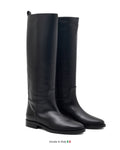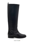 Crafted with unwavering precision in Italy, this knee-high boot embodies the essence of minimalist luxury. Constructed from premium black calf leather and fully lined in supple leather, the silhouette is deliberately understated — free from embellishment, yet rich in detail.