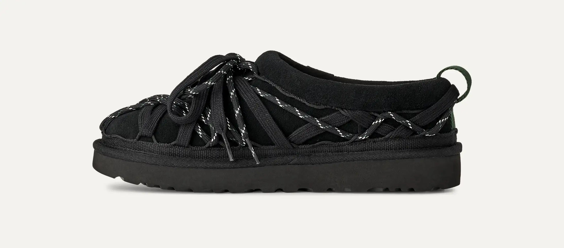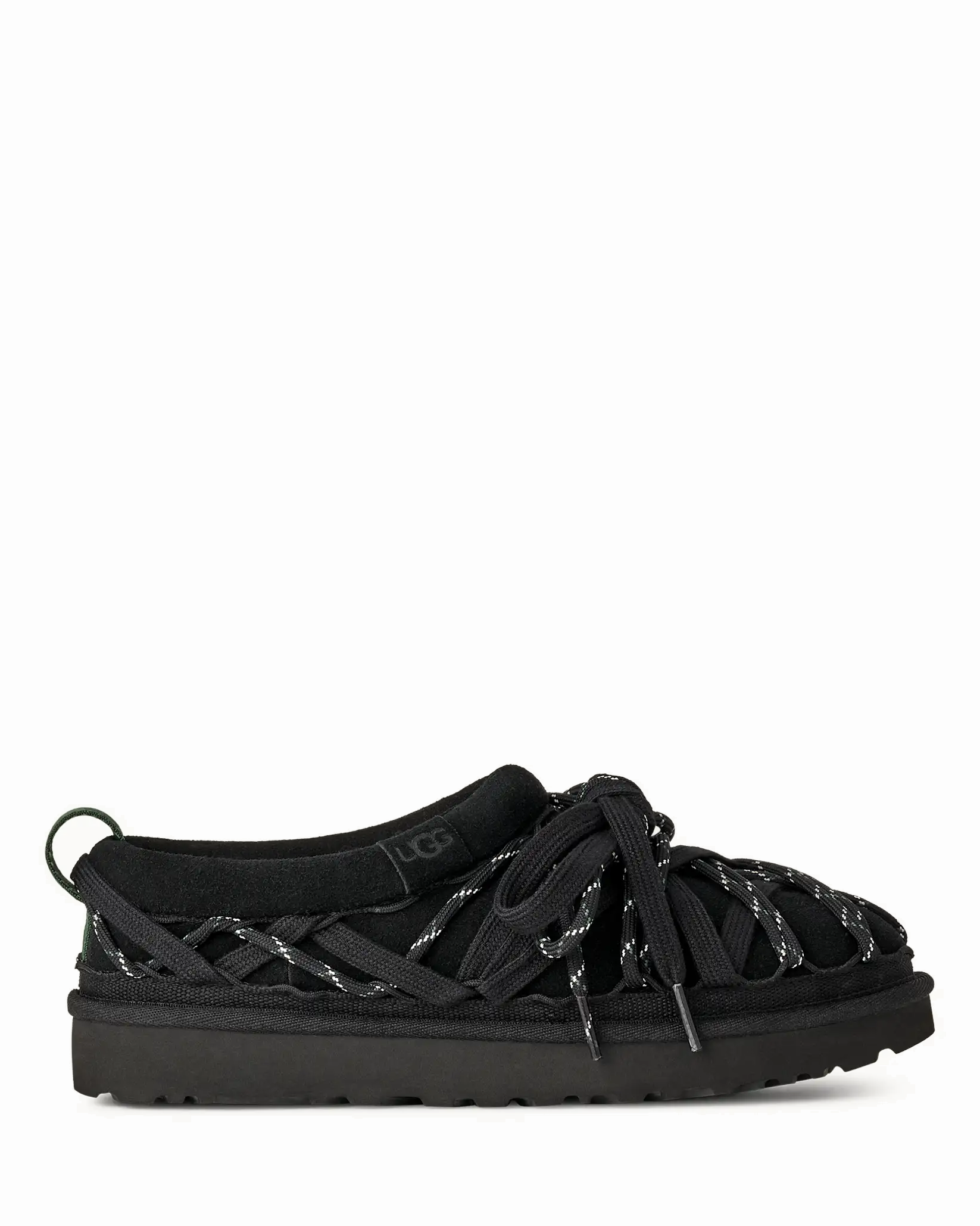 A blank canvas for self-expression. The Tasman Lace gives you the comfort of Ugg's classic Tasman slip-on, with endless ways to wear and flex your creative muscle. UGG started with the essentials: a genuine suede upper, an upcycled UGGplush™ wool-blend lining, and a lightweight sugarcane EVA outsole…then they took it to the next level. Featuring a dual-lace system with multiple lacing, looping, and tying options, this is your moment to make it your own. Add charms, beads, or call on your never-duplicated style for infinite outfit possibilities and all the personality a shoe can give.