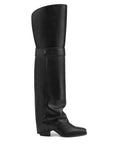 Introducing WONDER, the bold sister style to WEATHER, designed to make a statement. This thigh-high boot features a luxurious leather and suede upper, complemented by a soft leather lining and footbed for ultimate comfort. The folded upper design and partially covered heel add a modern, chic touch, while the 50mm block heel provides just the right amount of lift. The leather veneer-wrapped rand and heel, along with the signature Nokwol stainless steel pin, offer refined detailing. With a pull-on style and durable resin outsole for stability, WONDER is the perfect boot to carry you through the winter months with elegance and edge.