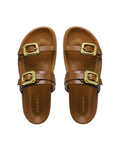 The ZAZ slip-on sandal is the perfect blend of laid-back style and bold flair, crafted for those who want to make a statement with ease. The full leather upper offers a rich, textured look, while the leather lining and leather-wrapped footbed ensure comfort and support all day long. Bold, brushed gold chunky buckles stand out as a key design feature, with the signature Nokwol stainless steel pin adding a touch of refinement. A lightweight TPU outsole makes these sandals durable yet flexible, ideal for summer adventures. Available in black, brown, and tan, the ZAZ sandal is a versatile must-have that pairs effortlessly with any warm-weather outfit, giving you instant style with minimal effort.